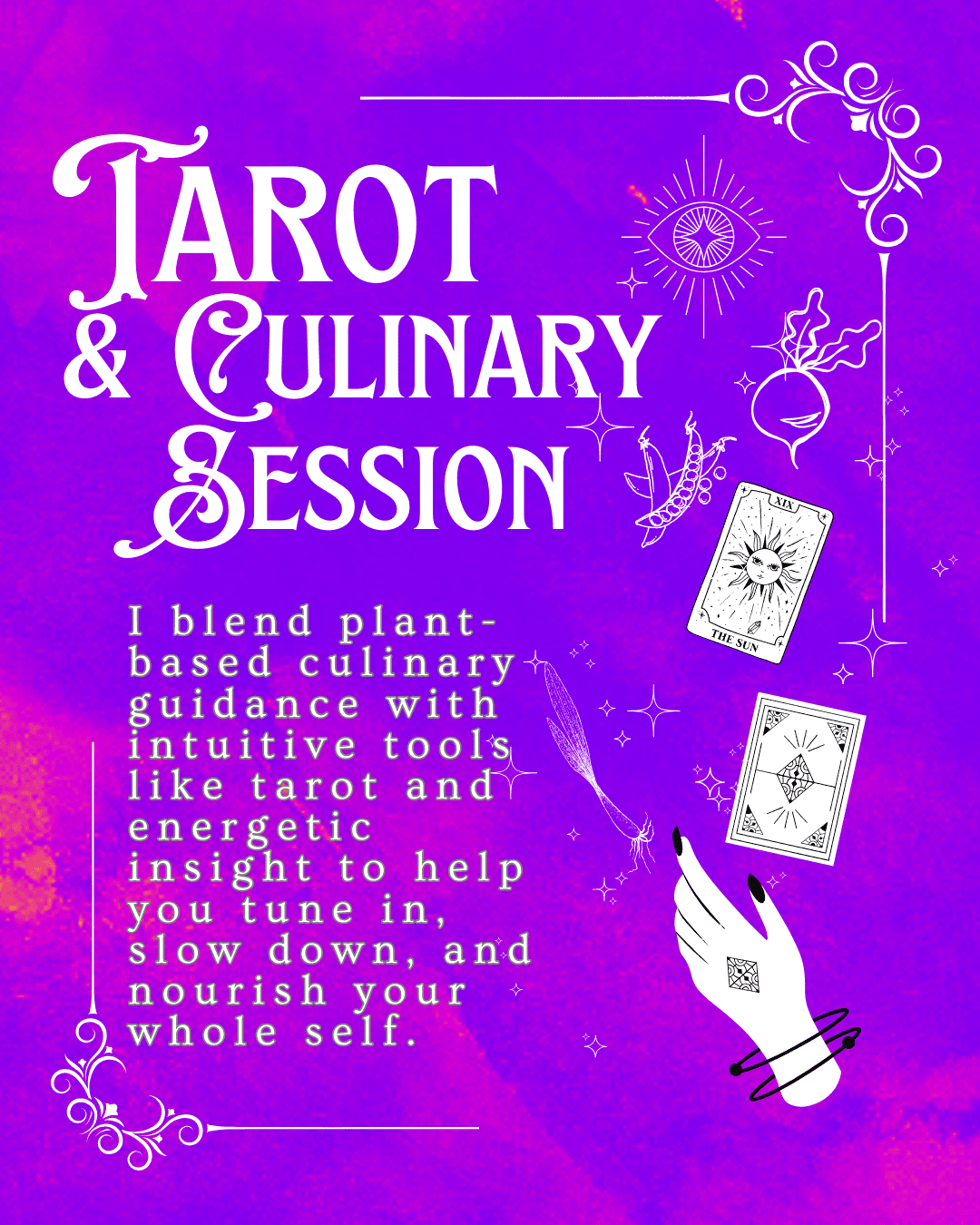 💫 I help you reconnect with your body and intuition through plant-based culinary wellness, tarot-guided insights, and personalized meal planning.✨